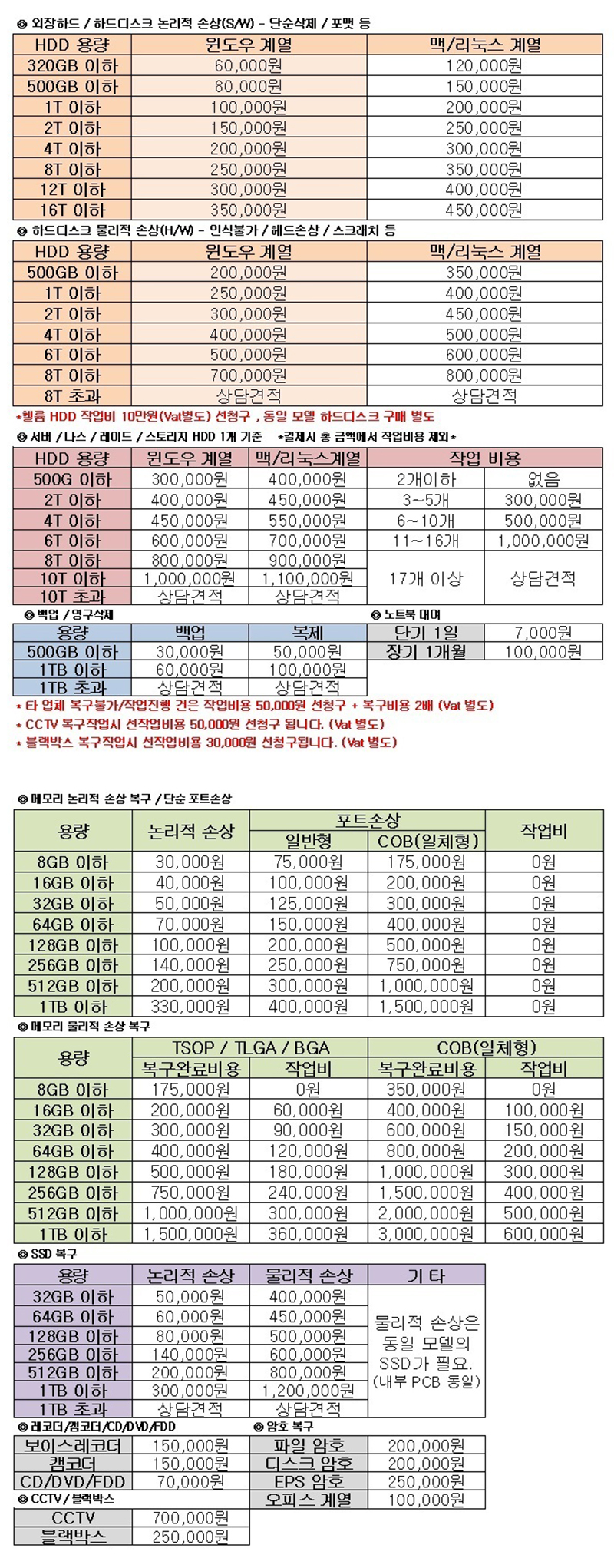 삭제/포맷/파손/인식 불가 복구 가능