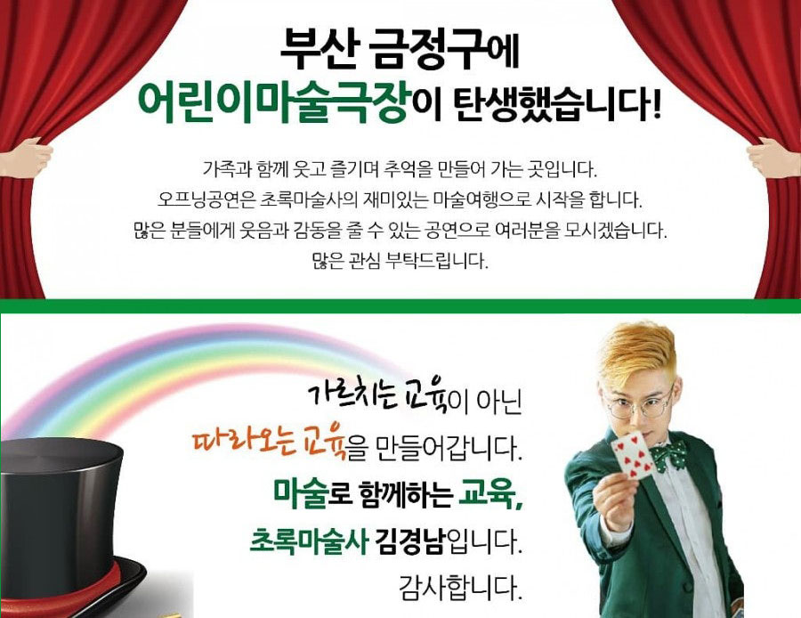 초록마술사 김경남의 마술극장은 단순한 마술 공연이 아닙니다.