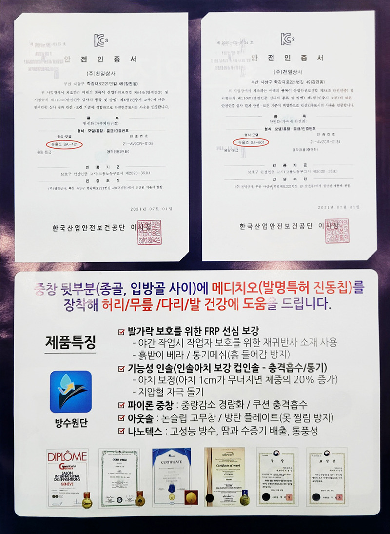 신발의 기능성을 인정받았으며 많은 고객 여러분들께 사랑을 받고 있습니다.