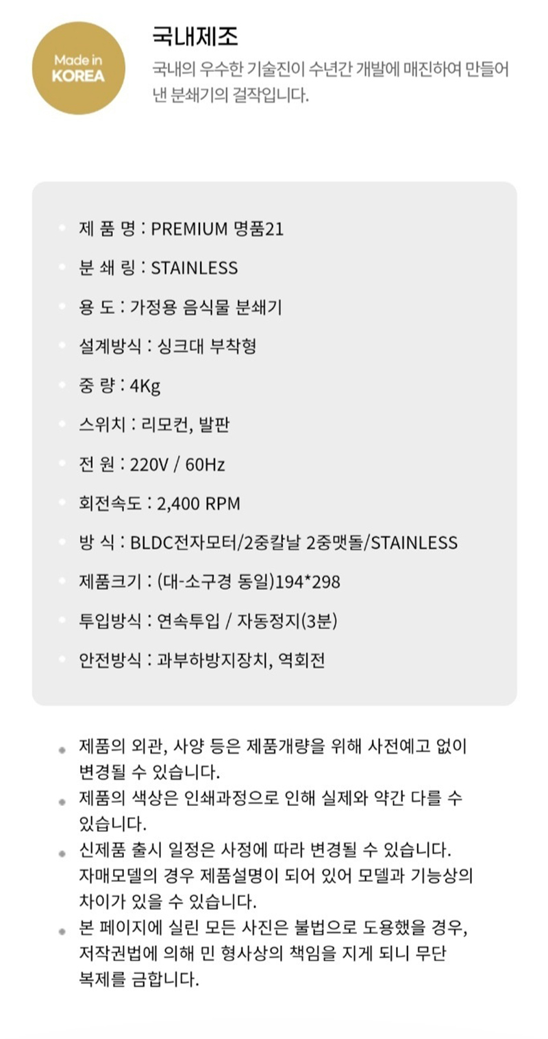 국내 최고의 브랜드 음식물 처리기 ‘황금맷돌’ 판매 전문점