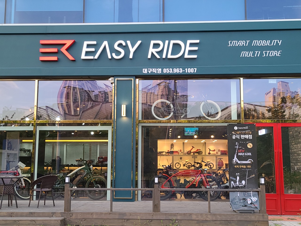 안녕하세요. 대구 동구에 위치한 저희 무브컴퍼니 본사 (이지라이드 대구.경북총판)는 전기자전거 판매 및 수리 전문 업체로서 생활용 ,미니벨로, 하이브리드, 산악용 전기자전거, 전동스쿠터, 전동킥보드 등의 다양한 상품을 판매하고 있으며, 사용 용도와 금액 대만 말씀해 주셔도 고객님께서 원하시는 적합한 제품을 추천해 드리고 있습니다.